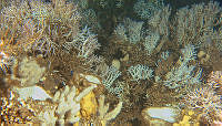 Blomsterpolypper av fjærstjerner på ødelagt korallrev. R1233VL1269 d-00-04-00