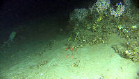 Svampskog med bladformede svamper (Axinella sp. og Phakellia sp.), ulike skorpedannende svamper, blomkålkoraller og anemoner på ca. 490 meters dyp (Storegga). R1251VL1288 b-00-10-39