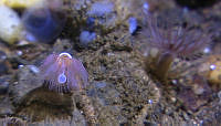 En børstemark i dyregruppen Serpulidae som har ute fangstkronen som den bruker til å fange mat med. Den runde platen som stikker ut er "døren" som marken bruker til å stenge åpningen av kalkrøret med. R1276VL1315-still-e-00-09-56