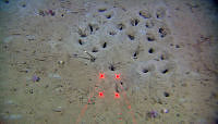 Huler som tangloppen Neohela har laget. Ytre Mørebank. R1275VL1314 d-00-02-59